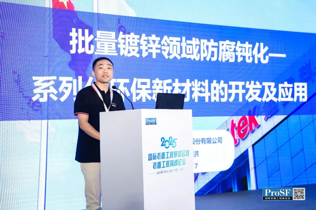 武汉迪赛环保新材料股份有限公司产品开发部经理詹洪,结合公司DS992等产品的开发与应用,报告了《批量镀锌领域防腐钝化环保新材料的开发及应用》,重点解析无铬预钝化液在高温稳定性、耐蚀性及成本控制上的突破。