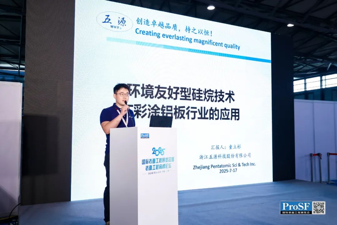 浙江五源科技股份有限公司研究院技术工程师童立杉报告题目为《环境友好型硅烷技术在彩涂铝板行业的应用》,探讨了硅烷技术替代铬化的可行路径与经济效益。