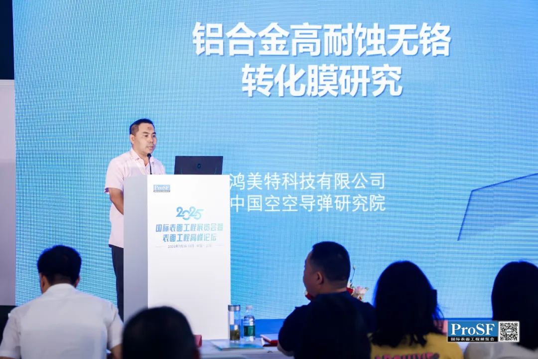 深圳市鸿美特科技有限公司总经理刘彦明的报告为《铝合金高耐蚀无铬转化膜研究》,通过创新的锆酸盐复合体系,在2A12等难处理铝合金上实现高耐蚀无裂纹膜层,成功突破中性盐雾96h、优异导电性、良好喷涂附着力——同时必须无铬化。