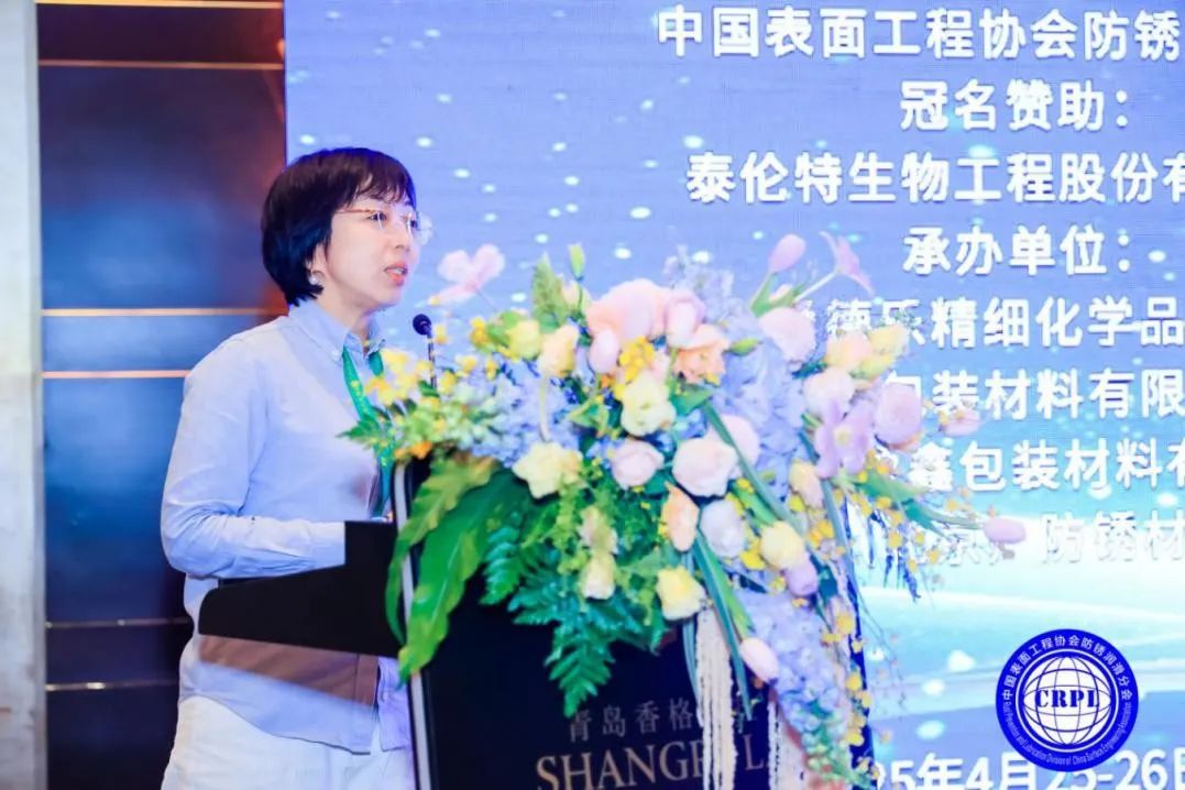 中圳德兴(北京)防锈材料有限公司表面处理工程师曲桂芬作《VCI气相防锈包装解决方案》的报告,报告介绍了具有接触防锈和不接触防锈双重保护屏障,产品无毒环保可生物降解。