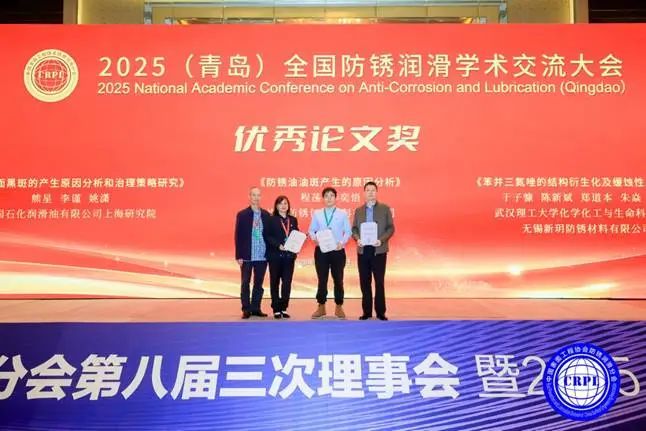 “2025全国(青岛)防锈润滑学术交流大会”圆满落下帷幕。为期两天紧张而充实的学术交流与探讨学术会议上,36位嘉宾分享了精彩的报告。报告涵盖中国腐蚀调查、航空装备防腐防护与控制、法国新材料产业信息分亨、新添加剂分子设计、合成和作用机理研究成果、特殊新材料开发、新工艺应用、防锈润滑材料绿色化发展、风电机组缓蚀技术新要求和现场应用问题分析和解决的经验分享等。与会代表对嘉宾的精彩演讲给予了高度的评价和充分的肯定,这对防锈润滑行业的技术进步和防锈润滑材料的绿色化发展必将起到有力的推动作用。